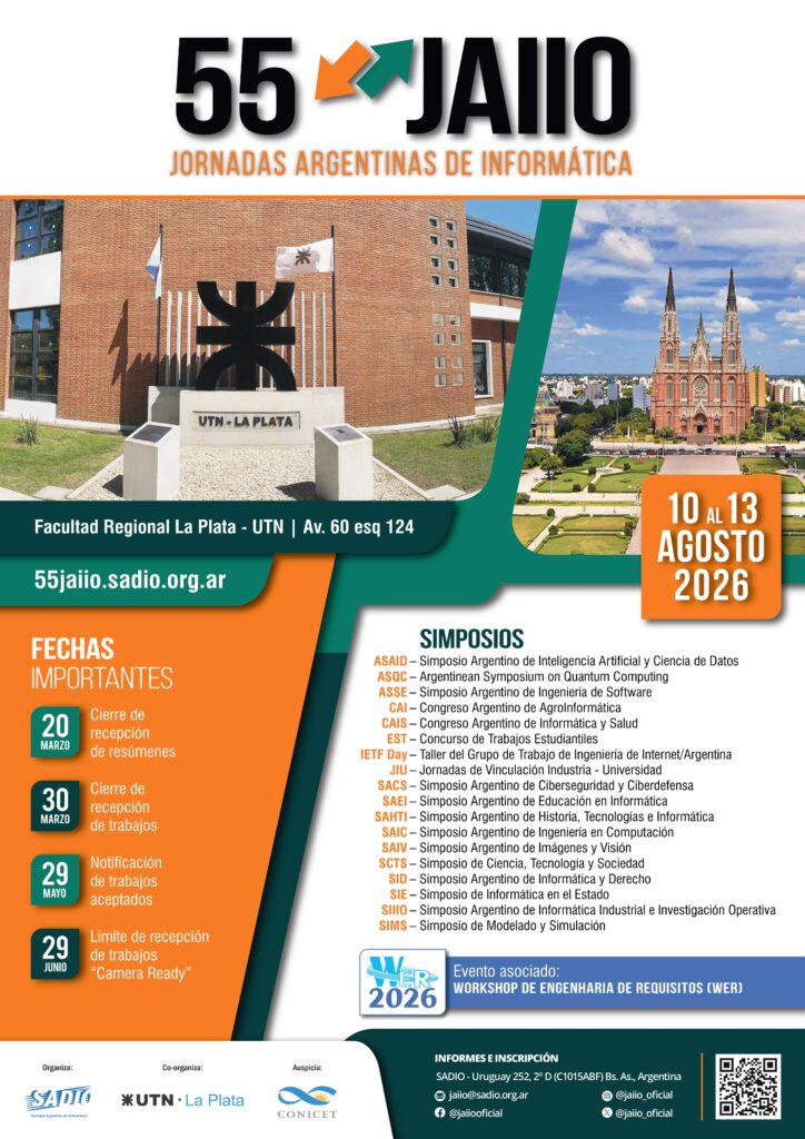 Consulte aquí los simposios que se desarrollarán https://55jaiio.sadio.org.ar/simposios/